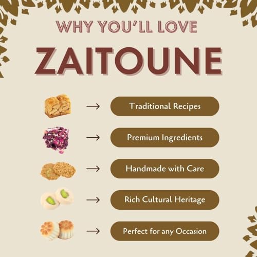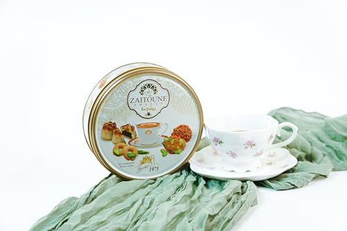 Zaitoune Premium Mini Mixed Cookies - 9 oz Bite-Sized Date Maamoul, Barazek & Ghraybeh Cookie Mix Handcrafted in Turkey Beautiful Reusable Gift Tin Perfect with Tea Great Sharing Present