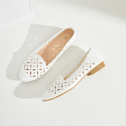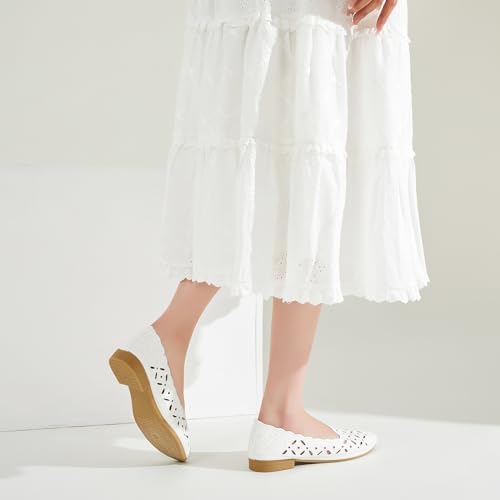 BABUDOG Womens Flats,Black and White Dress Flats with Flower Eyelets,Breathable Ballet Flats