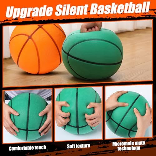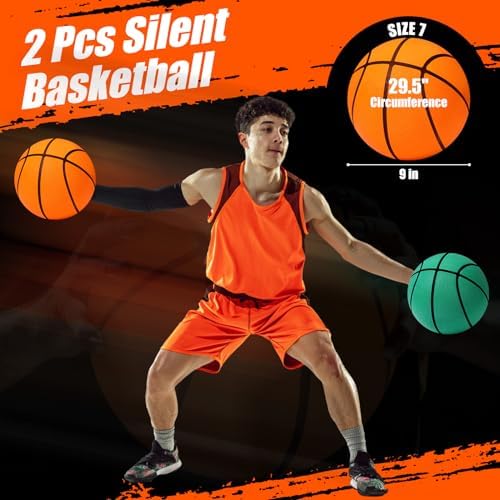 JellyArch 2 Pcs Silent Basketball 9 Inch Indoor Soft Foam Basketball Official Size 7 Sports Ball Elastic Inside for Youth Kids Dribbling Training Practice Ball