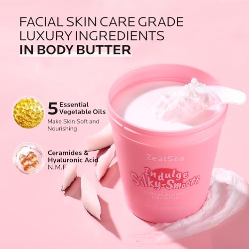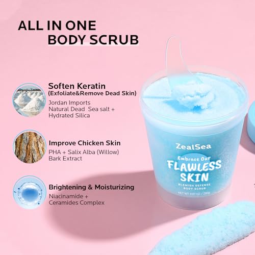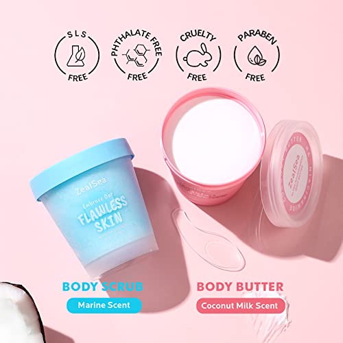 ZealSea Body Scrub & Body Butter Set: Dead Sea Salt Exfoliating Natural Body Scrub Moisturizing Brightening Body Hand Legs Foot Scrub 9.88 Oz and Coconut Shea Body Butter 7.05 Oz for Women Men