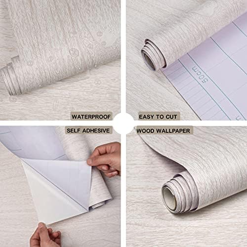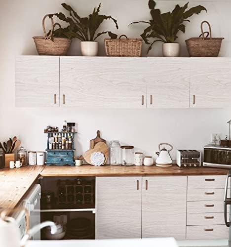Lativo White Wood Contact Paper for Cabinets and Drawers Wood Grain Peel and Stick Wallpaper for Furniture Table Shelf Liner Self-Adhesive Wallpaper Vinyl Waterproof Easy to Install\/Clean 18inW 118in