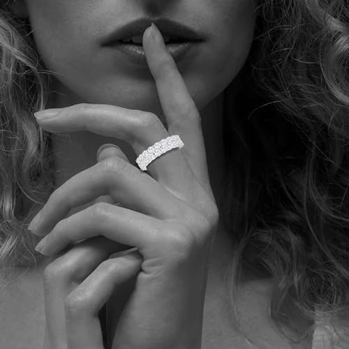 18K White Gold Plated Round-Cut Cubic Zirconia All-Around Band Ring Cocktail Jewelry for Women and Men