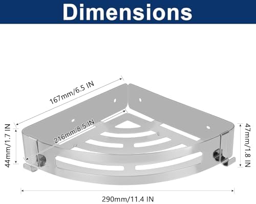 NearMoon Bathroom Shower Caddy 2 Pack, No Drill 304 Stainless Steel Shower Organizer with 2 Hooks (Corner Shelf, Chrome)