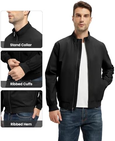 Rdruko Men's Lightweight Jackets Casual Fall Stylish Windbreaker Light Dress Zip Up Coat with 3 Pockets