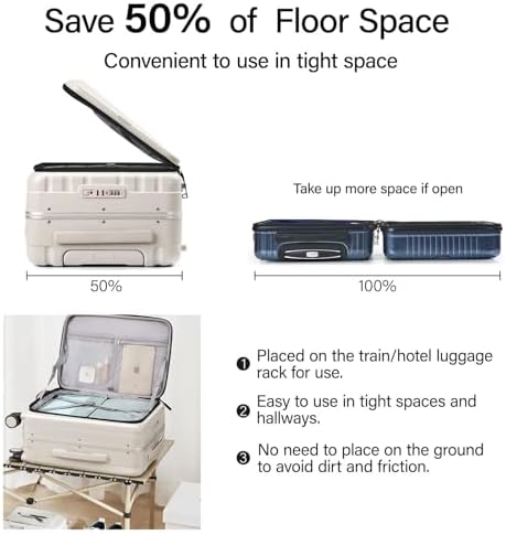 Hanke 20 Inch Carry On Luggage with Wheels PC Hard Shell Suitcase Top Opening Aluminum Frame Travel Luggage Suitcases for Woman Men Gifts.(Ivory White)