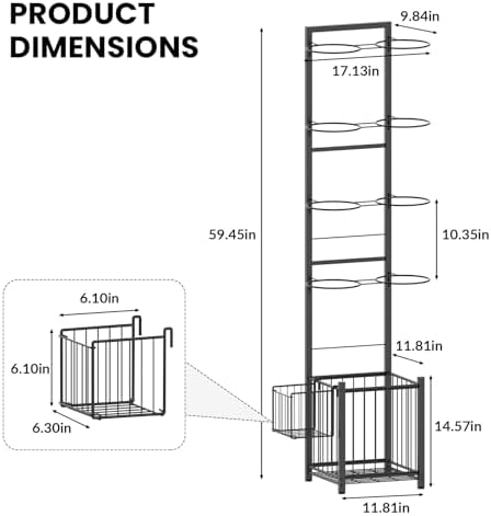 CADUKE Basketball Storage, Vertical Ball Rack for Garage, 8 Balls Sports Ball Holder for Basketball, Soccer, Volleyball, Football, Rackets in Garage, Indoor, Outdoor, Black