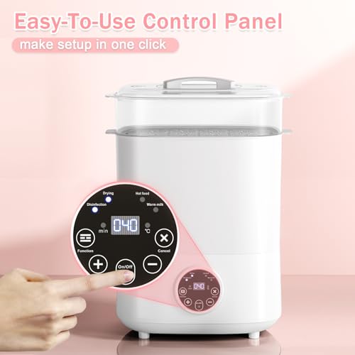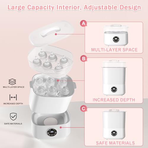 Fisca Baby Bottle Sterilizer and Dryer, 5-in-1 Large Capacity Bottle Sanitizer and Dryer, 2 Layers Compact Baby Bottle Electric Steam Sterilizer and Dryer for Baby Bottles, Pacifiers, Pump Parts