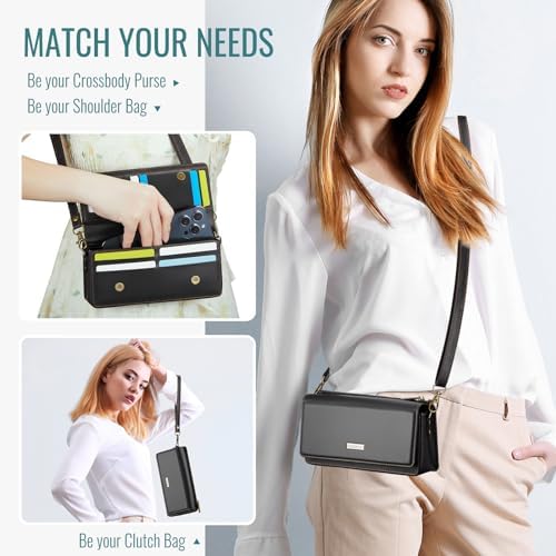 HERCOO Small Crossbody Phone Purse, Women's RFID Crossbody Wallet Wristlet Purse with Phone Pocket