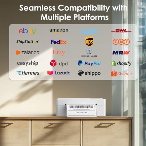 KNAON Shipping Thermal Label Printer, 4x6 Portable Label Printer, Bluetooth Label Maker for Small Business, Support iPhone,Android,Windows,Mac,Chromebook,Works with USPS, Ebay,Shopify&More, White