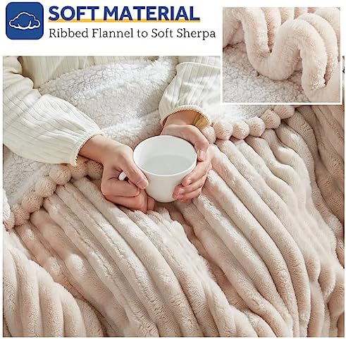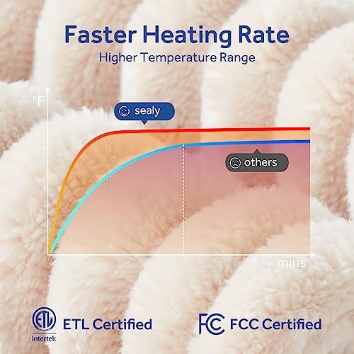Sealy Electric Blanket Heated Throw, Soft Cozy Ribbed Flannel to Sherpa Reversible Safe Heating with 6 Heat Settings & 2-10 Hours Auto-Off Over-Heat Protection, Machine Washable, 50"x60" B