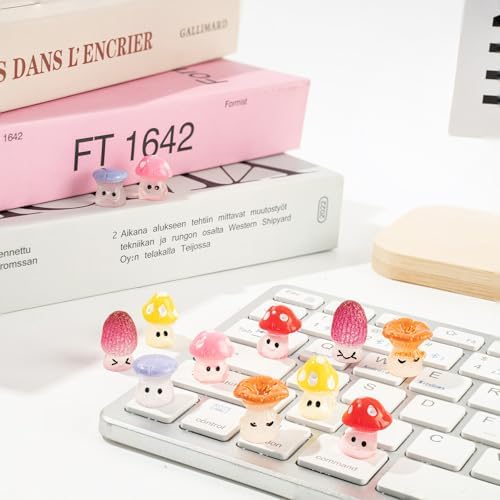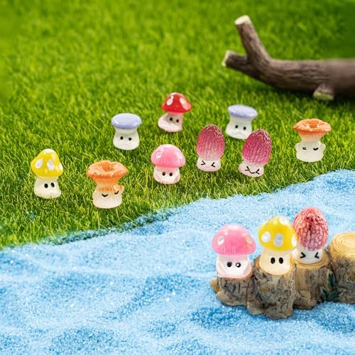 Rislobx 12PCS Luminous Mushroom Car Dashboard Decorations, Cute Mushroom Decor for Women Rear View Mirror Ornament Cute Car Decor Interior Dashboard Accessories for Home Office