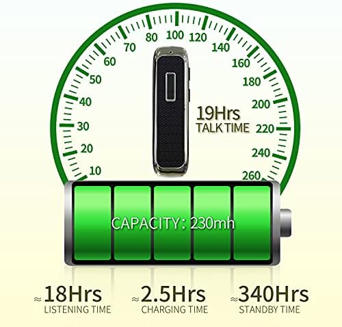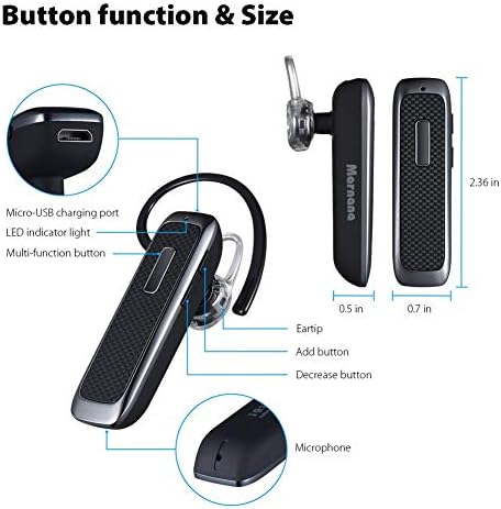 Marnana Bluetooth Headset, Hands-Free Wreless Bluetooth Earpiece with 18 Hours Playtime and Noise Cancelling Mic for iPhone Samsung Android Cell Phone Truck Driver - Black
