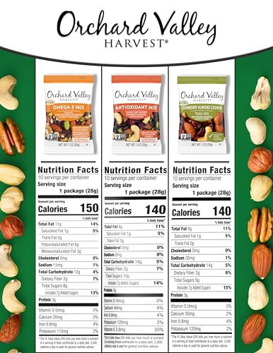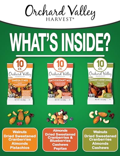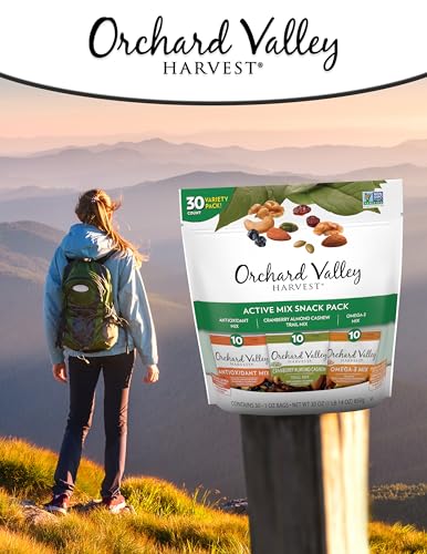 Orchard Valley Harvest Active Snack Pack Mix, 1oz Bags (Variety Pack of 30), Antioxidant Mix, Cranberry Almond Cashew, Omega-3 Trail Mix, Healthy Snacks for Adults and Kids, Gluten Free