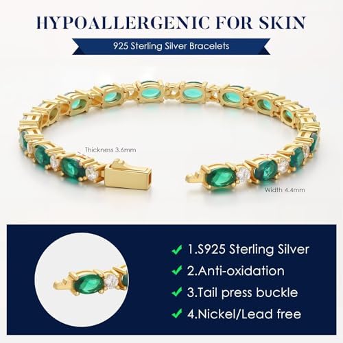 Iefil 14K 镀金网球手链 女式 - 925 纯银诞生石手链,女士周年纪念生日礼物,送给女士她的珠宝礼品,16.5 厘米 - 17.78 厘米