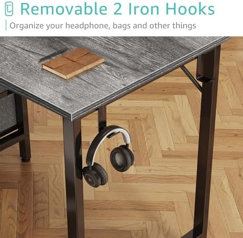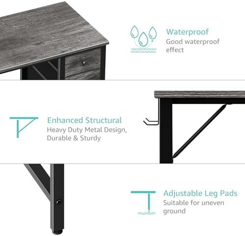 Lufeiya 47 inch Computer Desk with 4 Fabric Drawers, Writing Work Study Desk for Home Office Bedroom, Modern Simple Student PC Desks, Gray